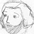 Even harder to find good pictures of than Jeremy.... Notes from model sheets: Face goes nearly straight down on 3/4 shots (I was referring to the outline of his face--you know, the part near the ear on the side farthest from the viewer. I doubt I've put any effort into keeping this trait... Supposedly, the area from his ears down was shaved (on his HAIR, I mean)--I doubt I kept that either. Can almost look boyish if happy Not surprising to be depressed (like you didn't know THAT already...) Insecurity in stance--almost reminiscent of some (early) Conan O' Brien. (::laughs::) Well, they're both tall red-headed freaks... ^_- Comparative heights--Mindy's head reaches up to his eyes; Anna's, to his chin. Reference pictures: I have no clue who this guy is (aside from a mystery writer). He's got a good likeness, though (well, aside from not having purple skin ^_-). |