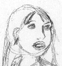 Not much to say about Mindy, either...looks like all my girls. (Of course.) Notes from model sheets: Often too much make-up (probably doesn't apply NOW, but certainly did in the past) Often triangular earrings (NOT in fights!) (She knows better than to wear dangly things when she's trying to kill someone. ^_-) Big lips Remember two strands of bangs on either side Often angry (there's a shocker) Head very circular (supposedly, to make her look different than my other characters, I tried drawing her face as a circle instead of an oval...) Doesn't have really thin arms Hands glow pink in anger (another shock) Only wears a watch if dressed up (left hand) Shorts tend to be fairly short Wears tennis shoes Reference pictures: I think she's a singer. Not really a great likeness, but I thought it was at the time... |