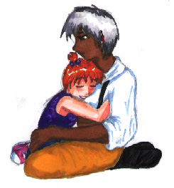 | jixo1.JPG Nate sent me this cool picture of Fiaona and Shimon (plus Fiaona's necklace/pendant). Cool shading, especially, and I always think it's cool when people draw my characters' costumes with, you know, details.... | |