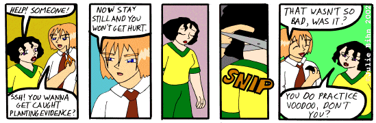 Thoughts: I'm soooo lazy lately; sorry. I'm playing video game RPGs...@_@ Not to mention spending my time at work (when there's no work to do) on Neopets (taradith) and online messageboard RPGs like this and this (both of which I'm the technical leader of ^^;) and this and this. If you feel like it go to any of those places and look me up. ^_^