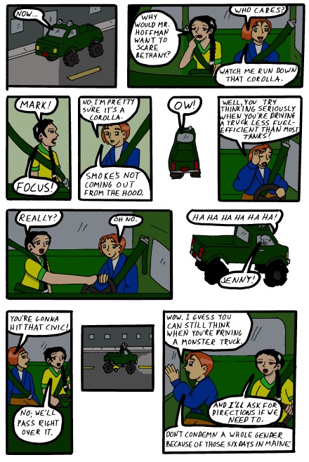 Random Tuesday thought: I had a mess of things I was going to rant about today, but now I don't feel like it. Oh well. ^^;;; I had some Almond Pocky today. It was good. I hate lettering, and I wasn't in the mood for coloring tonight. (Yeah, that's right; I usually color on Sunday nights or earlier if I possibly can, but I didn't manage it this week since I went to see the second X-Men movie Sunday afternoon. There were SOOO many ads at the beginning; I don't know when this all happened. I hate ads! But don't worry; you'll never see ads on my page. If I had ads, it's possible that I'd get cease and desist orders (not likely, but possible)--and besides, banner ads don't make enough money to warrant the trouble it would cause all of you nice people...)